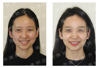 相对于初诊时的深覆盖、牙列不齐的现象,矫正结束后咬合改善很多,牙齿整齐健康,迷人的笑容成了她的标志。