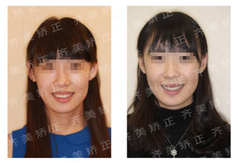 这位姑娘求诊时,主诉门牙前突,不好看,经过检查发现,她的牙齿不仅仅存在这个问题,深覆盖也是她的问题之一;矫正结束了,牙齿整齐健康了,深覆盖的现象明显改善了很多,脸型也变